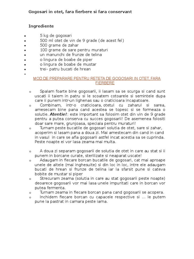 Reteta Gogosari Cu Otet Si Zahar