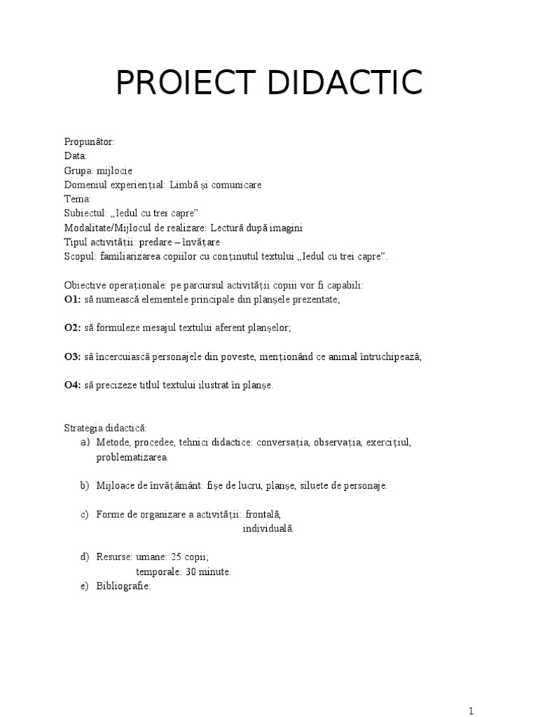 Fise De Lucru Gradinita Iedul Cu Trei Capre De Octav Pancu Iasi