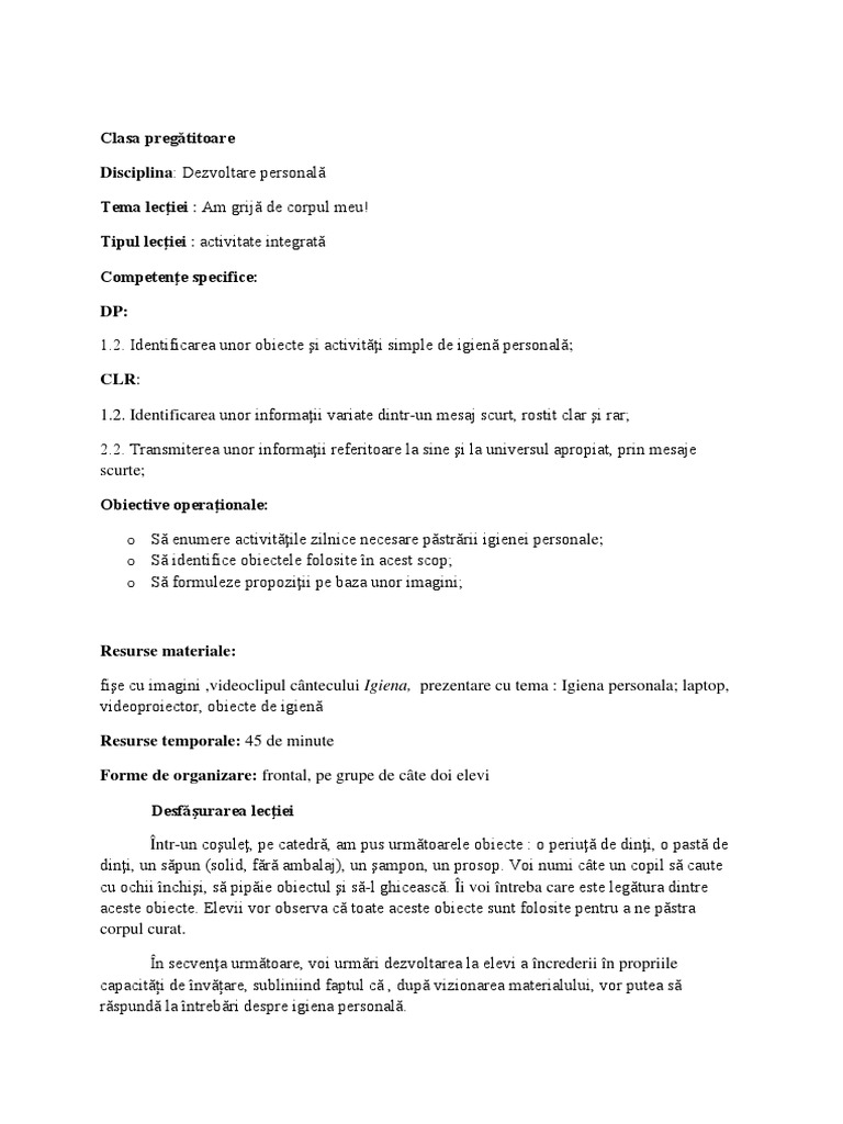 Https Www Nextclass Ro Wp Content Uploads 2018 10 Proiect Didactic E2 80 9e Reguli De Igien C4 83 Personal C4 83 E2 80 9d Pdf