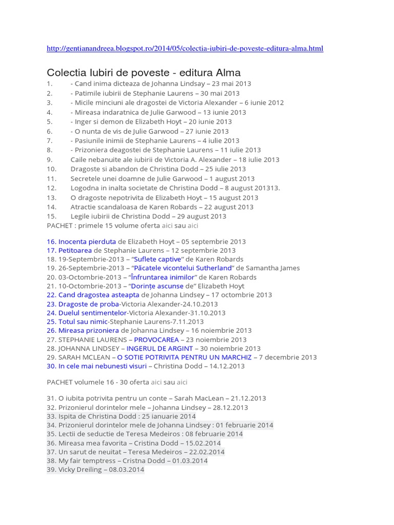 Colectia Iubiri De Poveste Editura Alma