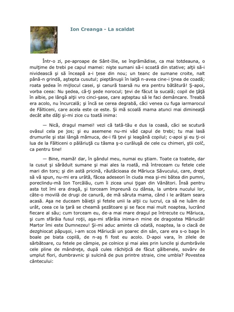 La Scăldat De Ion Creangă