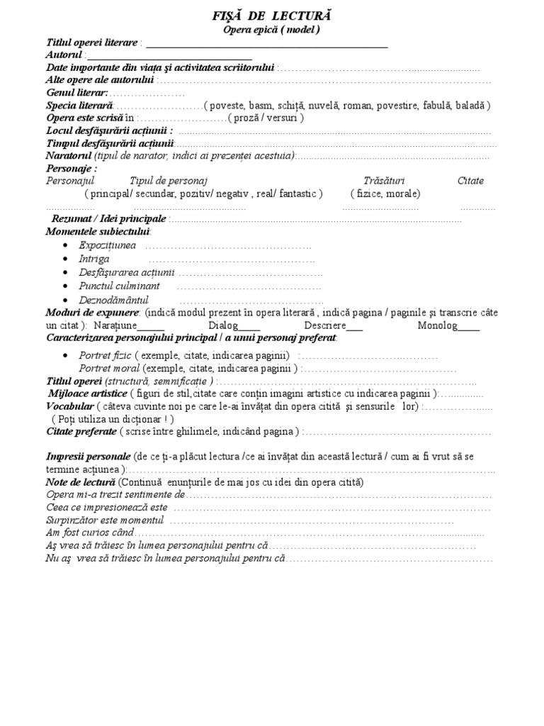 Fisa De Lectura Model