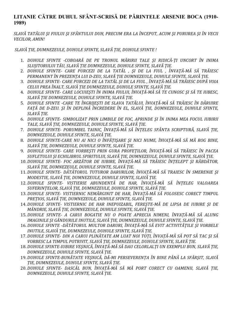 Litanie Către Duhul Sfant Scrisă De Litanie Către Duhul Sfant Scrisă De Arsenie Boca Facebook