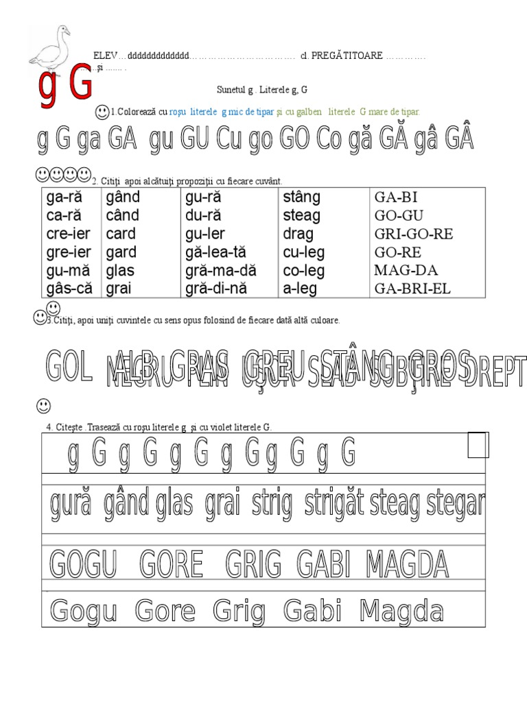 1 Sunetul Si Litera G Mic De Tipar
