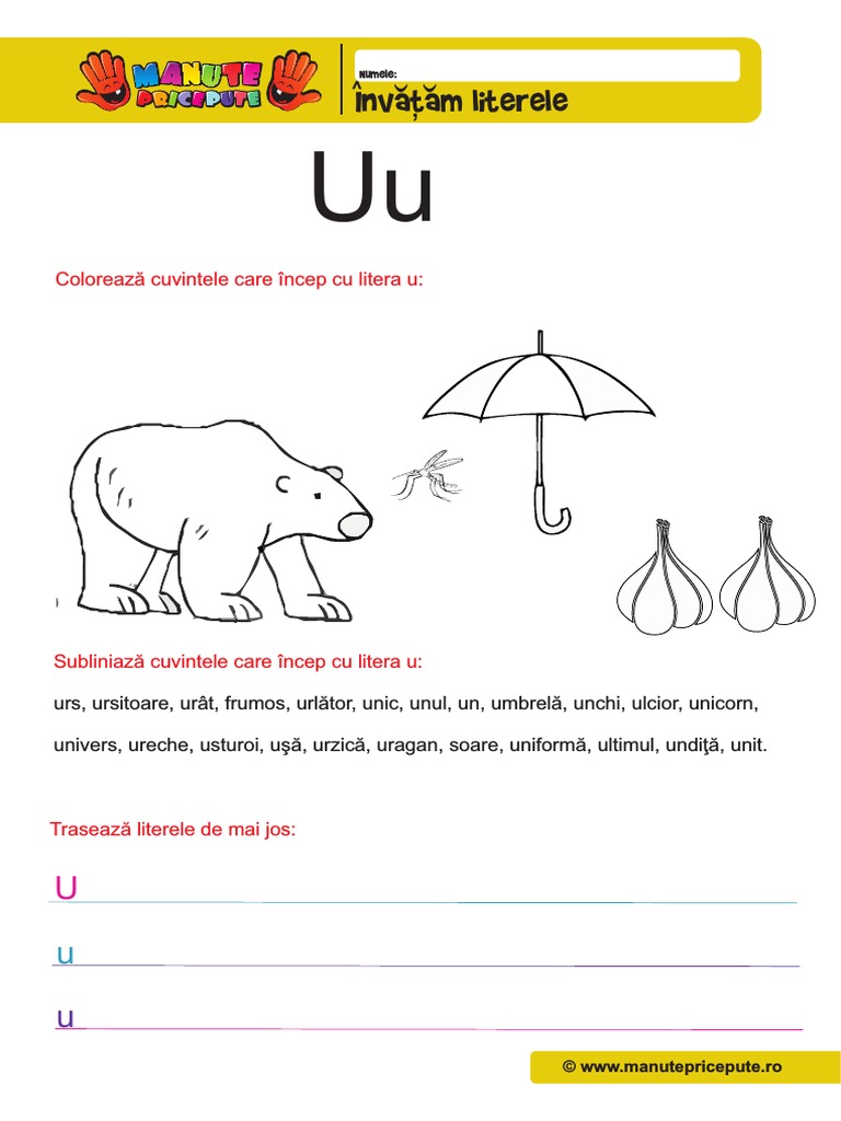 Litera U Planșă De Colorat Kids Rugs Animal Crafts Kids