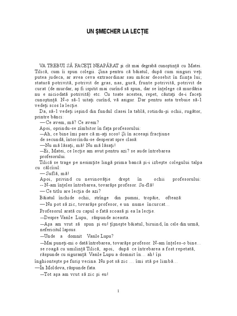 Un Smecher La Lecţie De Mircea Santimbreanu Din Volumul Recreatia Mare