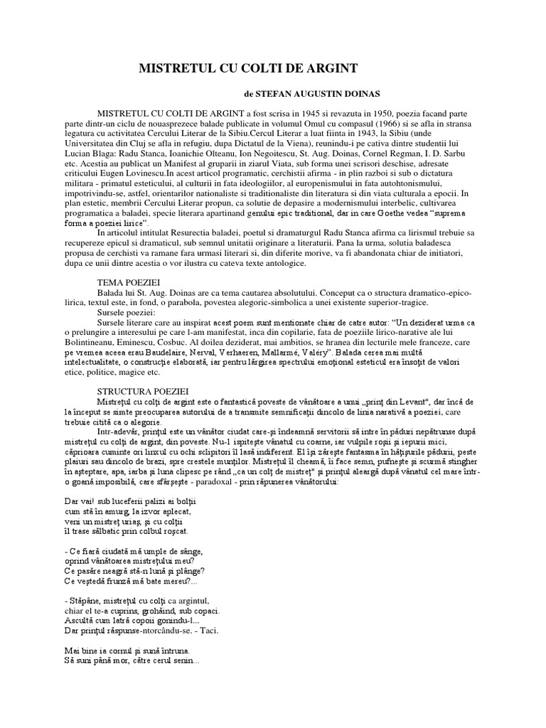 Mistretul Cu Colti De Argint Stefan Augustin Doinas Superba Poezie Divina Ca Un Destin De Implinit