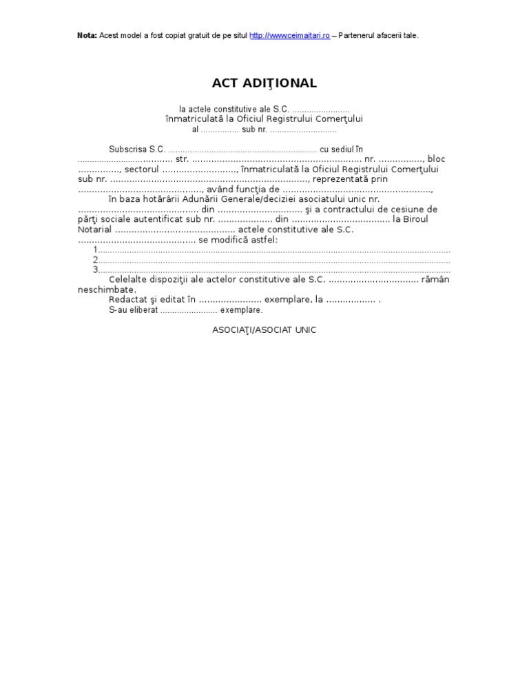 Model Act Adițional La Cim Modificare Funcție Theexperts Ro