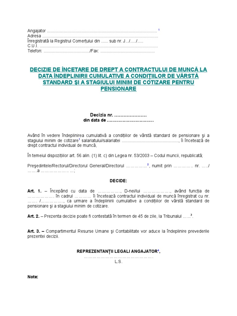 4 Decizie De Incetare Cim Indeplinirea Conditiilor De Pensionare