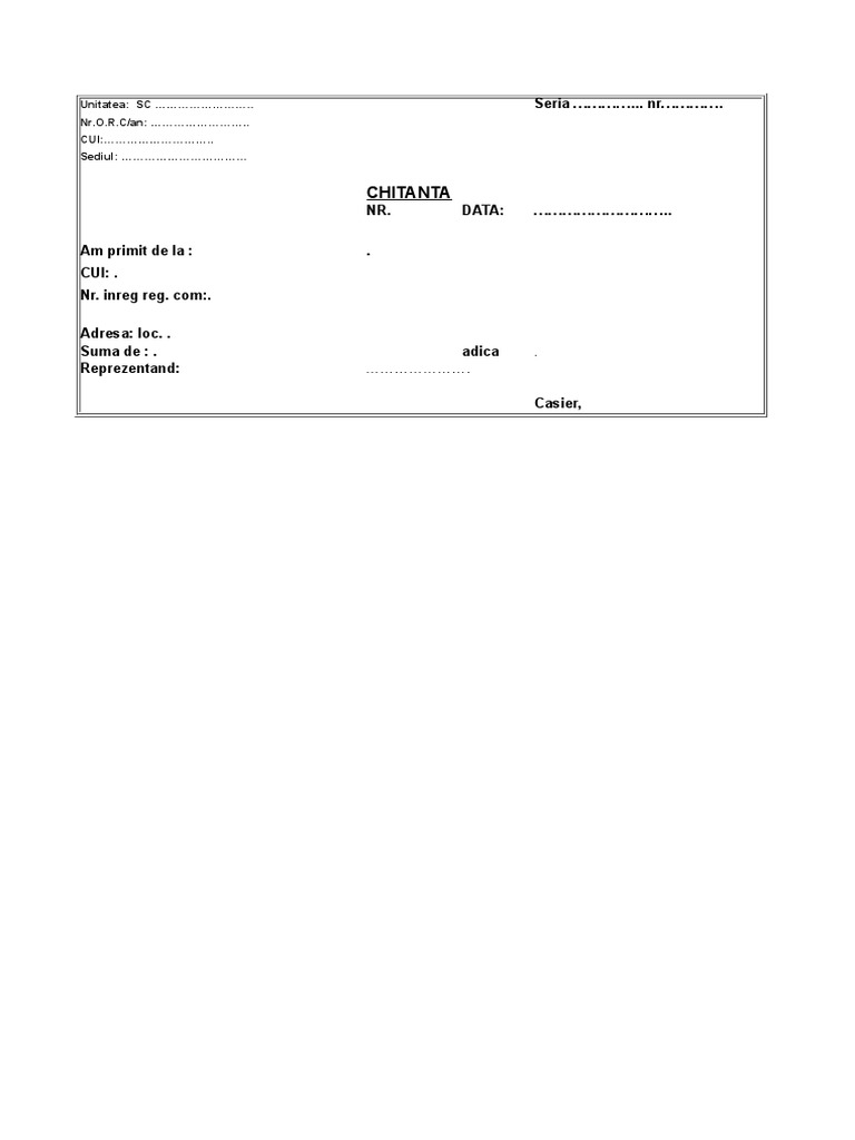Puteti descarca un model de aici. șabloanele sunt ușor de completat și tipărit. Acum mostenitorul acestuia a pretins o noua suma de bani in caz contrar amenintand cu plangere la politie si. Tatal meu cumparatorul nu a semnat aceasta chitanta ci doar vanzatorul si doi martori.