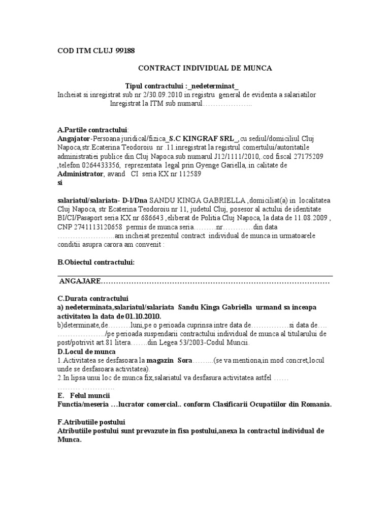 Contract Individual De Munca Inspectoratul Teritorial De Munca Iasi