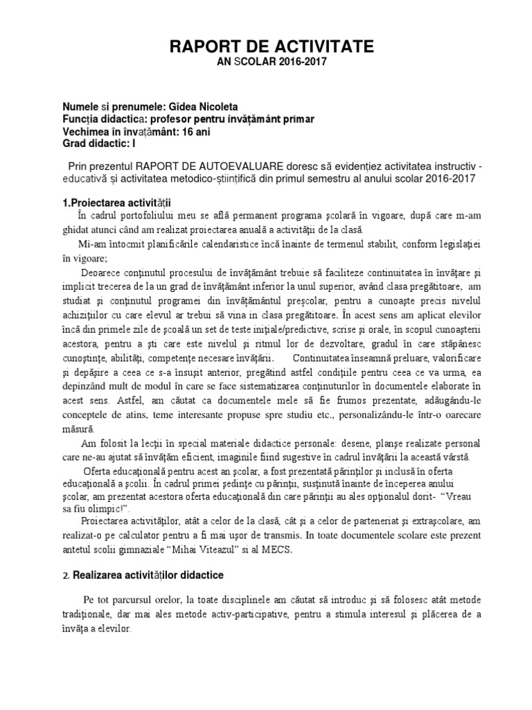 Doc Raport De Activitate Model Tip Pop Cristina Academia Edu