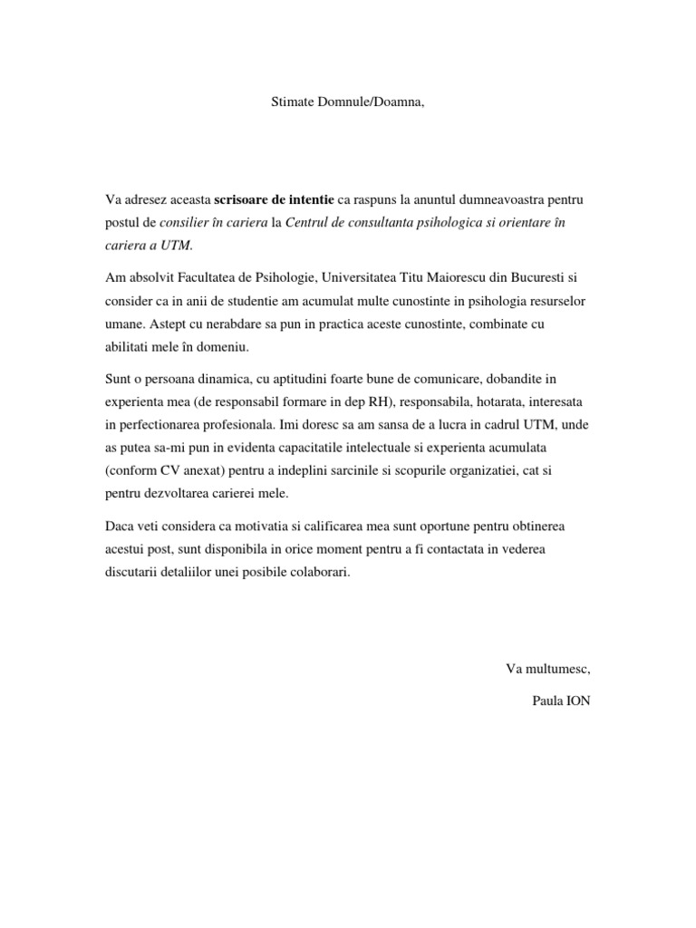 Pdf Model Scrisoare De Intentie Hr Alex Fane Academia Edu