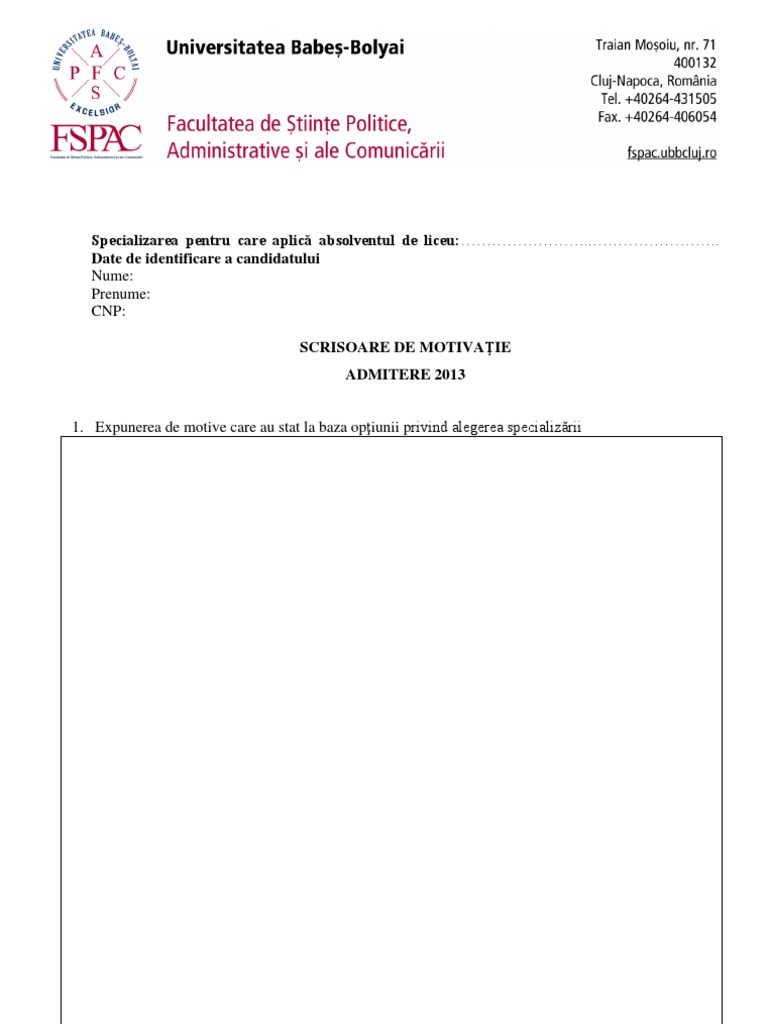 Model Scrisoare De Intentie Facultatea De Stiinte Politice