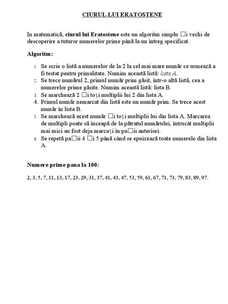 Ciurul Lui Eratostene Doc Document