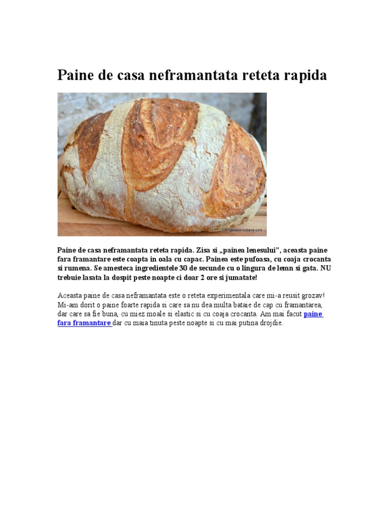Paine De Casa Neframantata Reteta Rapida Doc