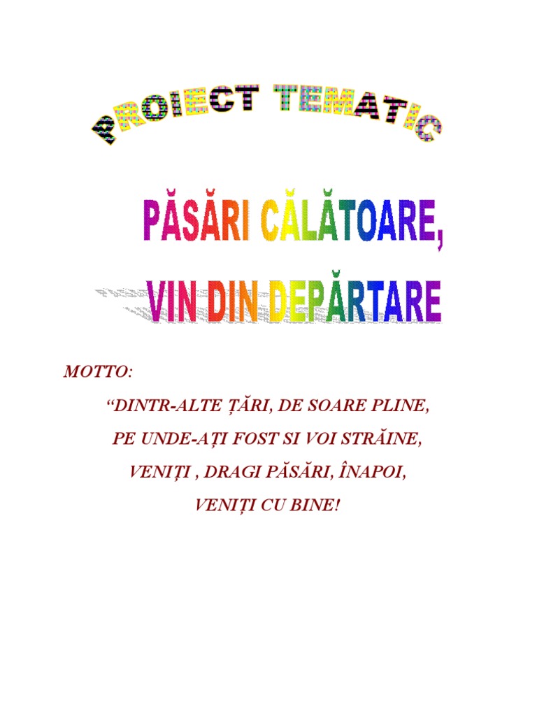 Doc Proiect Tematic Pasari Calatoare Faza I Obiective De Referinta Soanca Simona Academia Edu