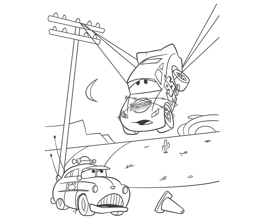 Plansa De Colorat Cu Fulger Mcqueen Sally Si Doc Tristi Din Cars Planse De Colorat