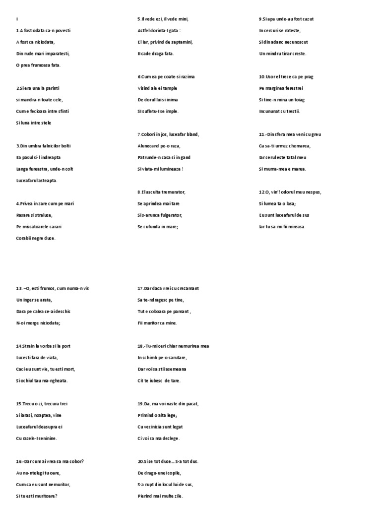 Luceafarul De Mihai Eminescu Versuri Catalin Vlasea Academia Edu